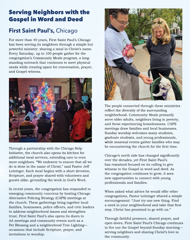 Our congregational ethos is deeply rooted in such acts of service, which continue to this day including feeding the hungry, homeless, senior citizens, children, and disadvantaged of our neighborhood. Volunteers are needed to greet guests, cook and serve the food, along with our social services partner’s volunteers from the Chicago Help Initiative. Substitutes are needed to fill in on a one-time, short-term or long-term basis.